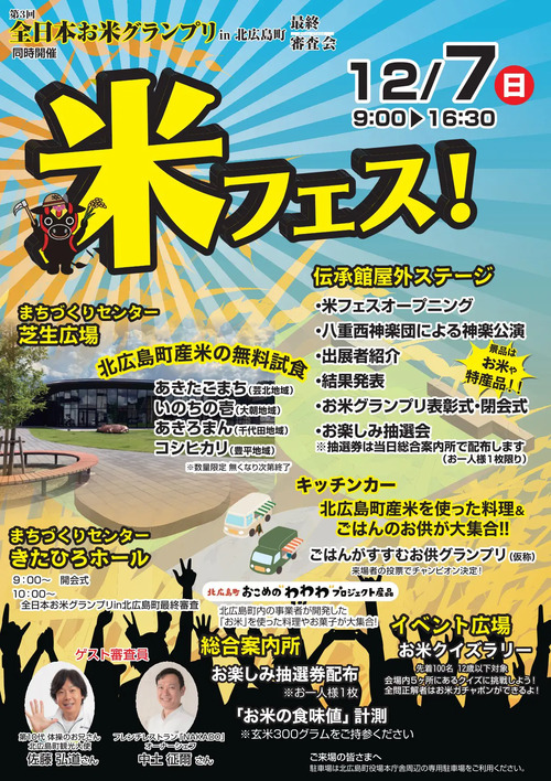 ■指定席/S席28,000円(約畳2畳半・6名分) A席26,000円(約畳2畳半・6名分) B個人席(畳)4,500円、C個人席(椅子)4,500円 カメラ席5,000円 [指定席券販売] 2025年10月12日(日)午前8時30分から道の駅舞ロードIC千代田(観光案内所となり会場)にて販売開始! 12日午前10時以降は(一社)北広島町観光協会(道の駅舞ロードIC千代田内観光案内所)にて販売します。 ※指定席の取扱いは、(一社)北広島町観光協会のみです。 S席とA席はお1人様1席販売、B席C席は4席まで販売します。 ■自由席/大人(前売)3,000円(当日)3,500円、中学生以下自由席は無料(指定席は有料) [前売券自由席販売所](一社)北広島町観光協会、ひろしま夢ぷらざ、千代田ショッピングセンターサンクス、サングリーン三次、コムズ安佐パーク ※前売券は、指定席・自由席ともに(一社)北広島町観光協会で電話予約可能です。